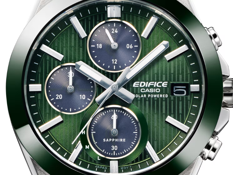 The new Edifice lineup includes three models: the EFS-S650DC-1A, EFS-S650D-2A, and EFS-S650D-3A. Available through Casio’s online stores in countries such as Germany and Spain, the blue EFS-S650D-2A and green EFS-S650D-3A models with silver casings are priced at €219. Meanwhile, the sleek black EFS-S650DC-1A, featuring an ion-plated bezel, casing, and strap, is slightly more premium at €259.