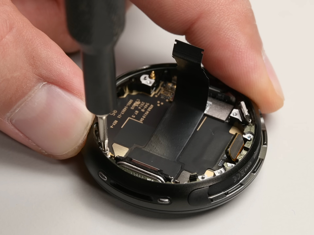 Instead of adhesive, the Pixel Watch 4 relies on gasket seals and screws to keep the housing secure. That sounds simple, but it’s a smart engineering move. The screws actuate hinged arms that lock the back panel firmly in place, while o-rings improve water resistance and help protect the internals from moisture. Even the battery is fastened with screws rather than sticky adhesives, making future replacements far more realistic for owners—or repair shops.