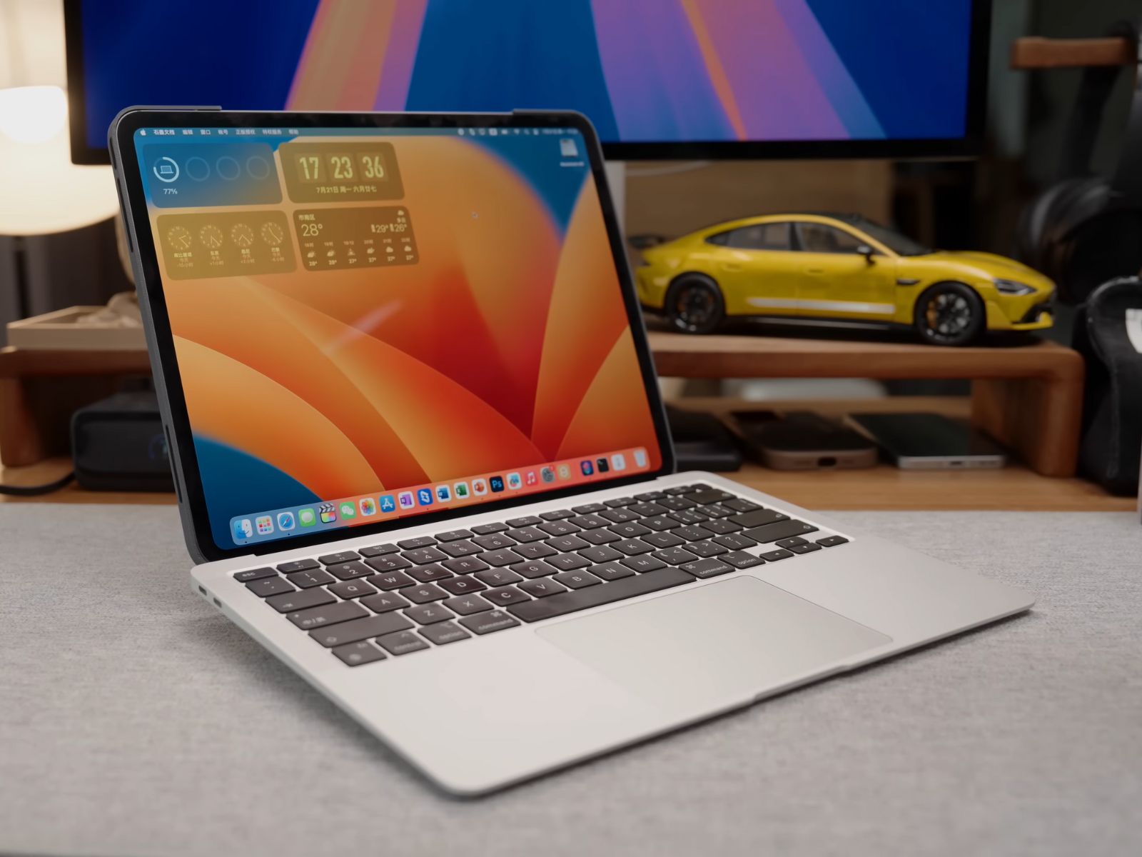 The iPadBook not only keeps the iPad securely in place but also provides ergonomic advantages with a raised typing angle. Additionally, the slight elevation of the MacBook Air’s base improves airflow, aiding in heat dissipation.